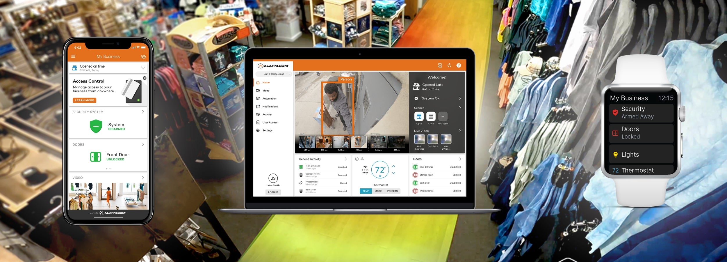 Powered by intelligence, Alarm.com's security solutions don't just react – they anticipate, learn, and adapt to your business's rhythms. With a variety of connected devices, get unprecedented safety, insight, and control.