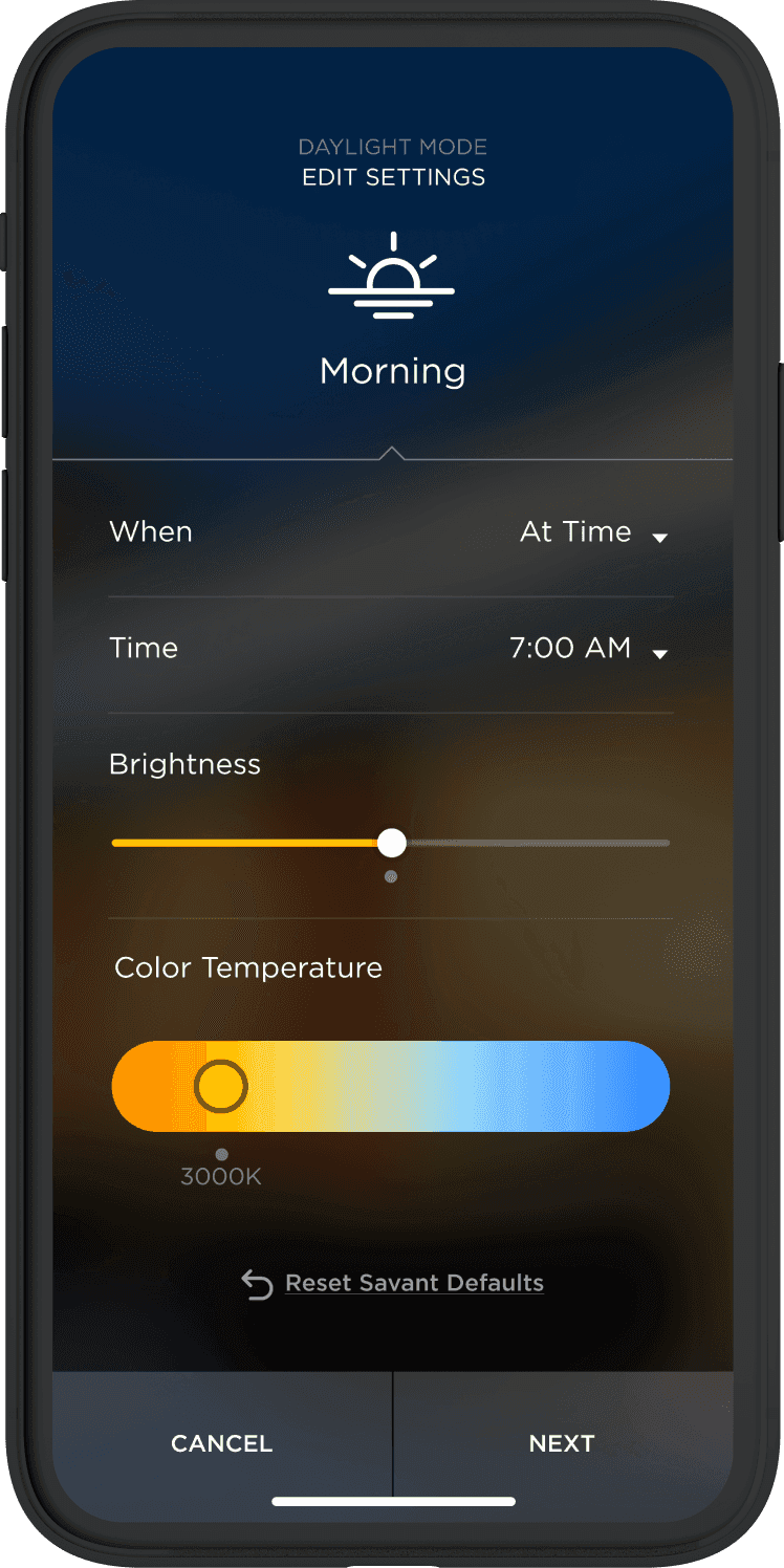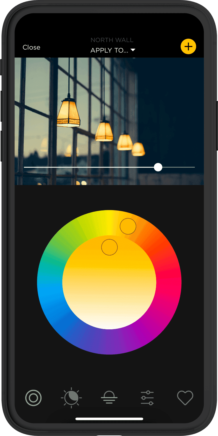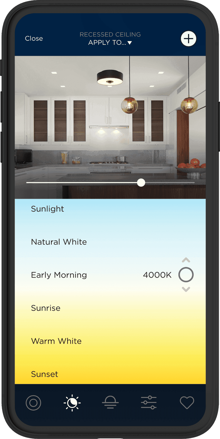 Create the perfect atmosphere for any occasion. Set your lights to wake you up gradually in the morning, adjust for better focus during work hours, or switch to warm tones for a cozy evening.