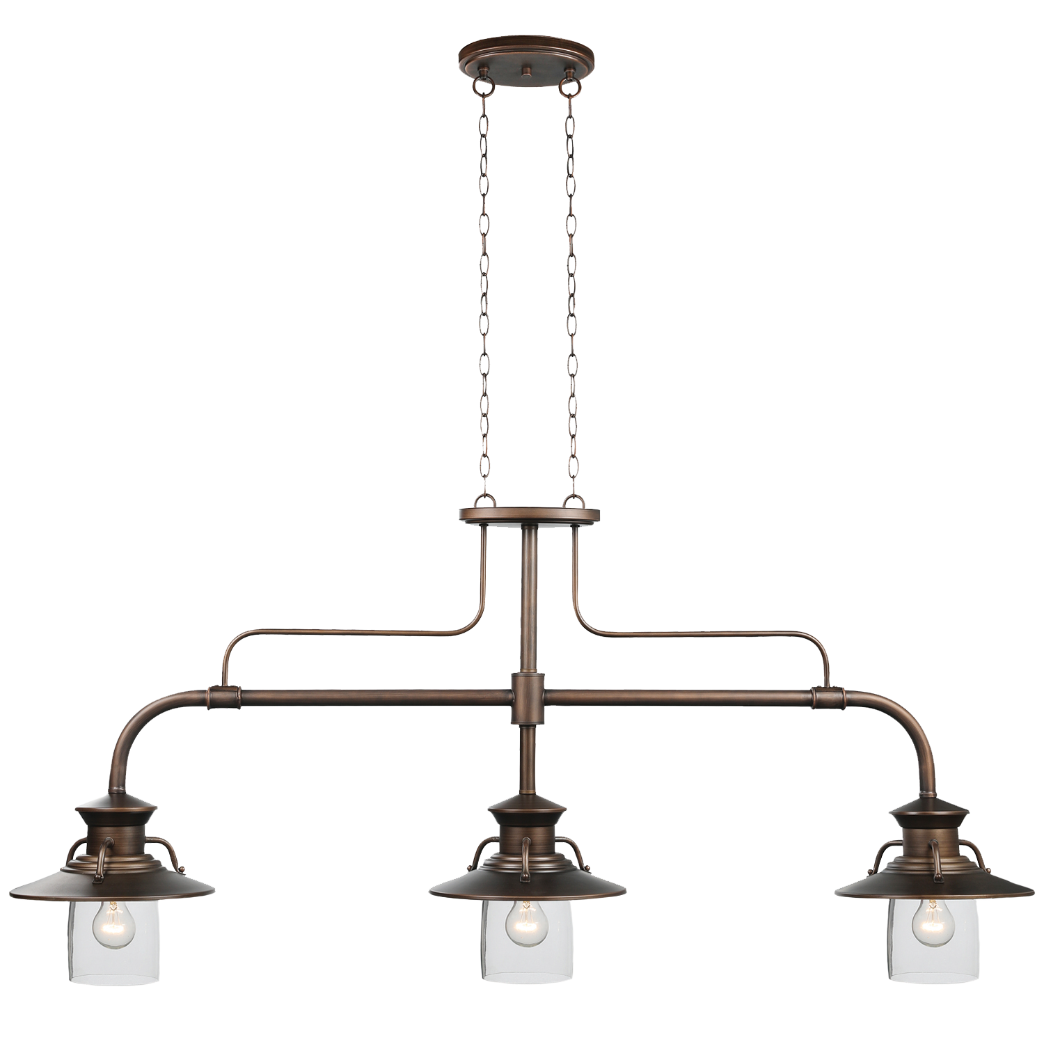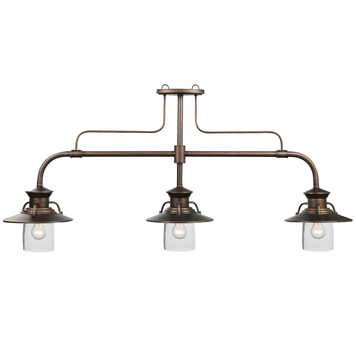 Create the ultimate game room with the Edison Bronze Bar 3 Light Billiard Light. This industrial-style billiard chandelier has a luxurious bronze finish that adds a touch of brilliance to any room. This 3-light chandelier is perfect for your rec room, bar, or any area that needs a stylish illumination touch. Transform your space with this modern and industrial billiard light for a look that will impress any guest.