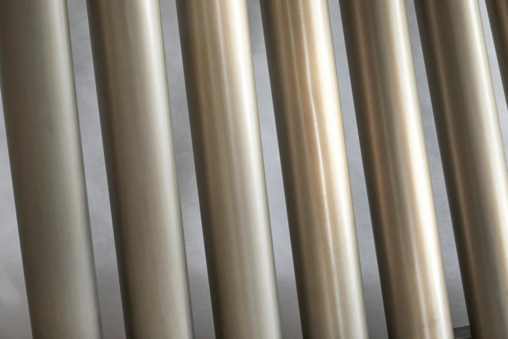 Explore the allure of the Brescia 8' Billiard Table, inspired by the artisanal elegance of its namesake city in Italy. Its captivating design features a base reminiscent of the harmonious strings of a harp, crafted from cylindrical metal uprights with a luxurious champagne bronze finish. Complemented by angled aprons in a rich, dark charcoal, this table combines beauty with functionality, featuring polished stainless steel rail sights and low-profile drop pockets seamlessly integrated into its sleek design.