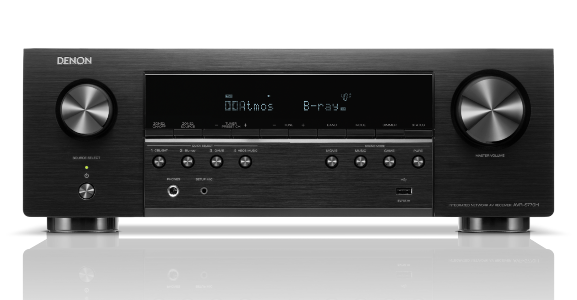 Enjoy incredible 8K video and 3D audio from the Denon AVR-S770H. Fill small to mid-size rooms with sound from a 7.2 or 5.2.2 surround sound set up with Dolby Atmos and DTS:X. And with HEOS® Built-in, you can stream and share music to any HEOS-enabled speaker throughout your home.