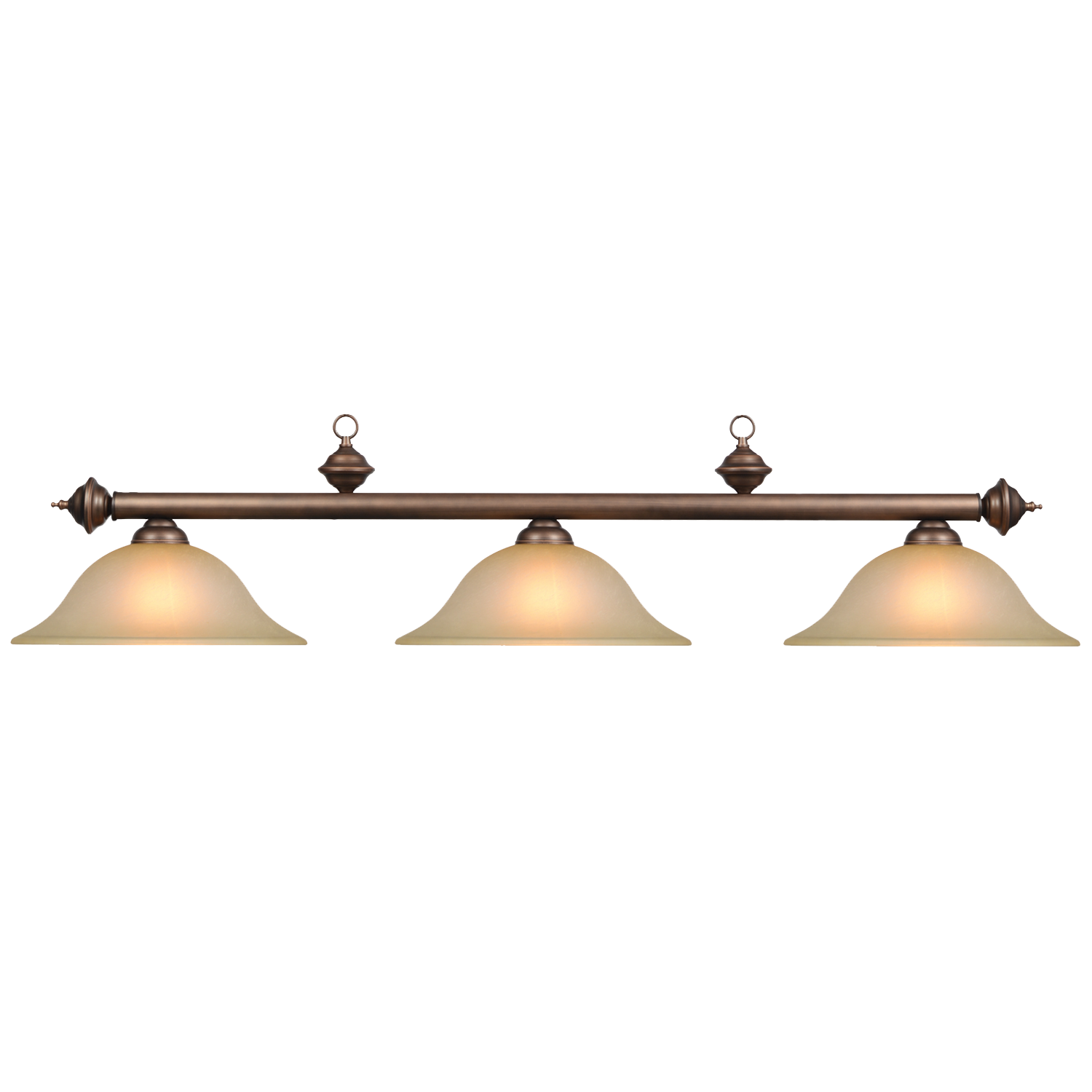 Add an element of classic style to your game room that will shine for years to come! Our Oil Rubbed Bronze 3 Light Billiard Light is the perfect lighting fit for any game room. This stylish fixture features three stainless glass shades with an eye-catching oil rubbed bronze finish, adding an elegant touch to the look of your room.