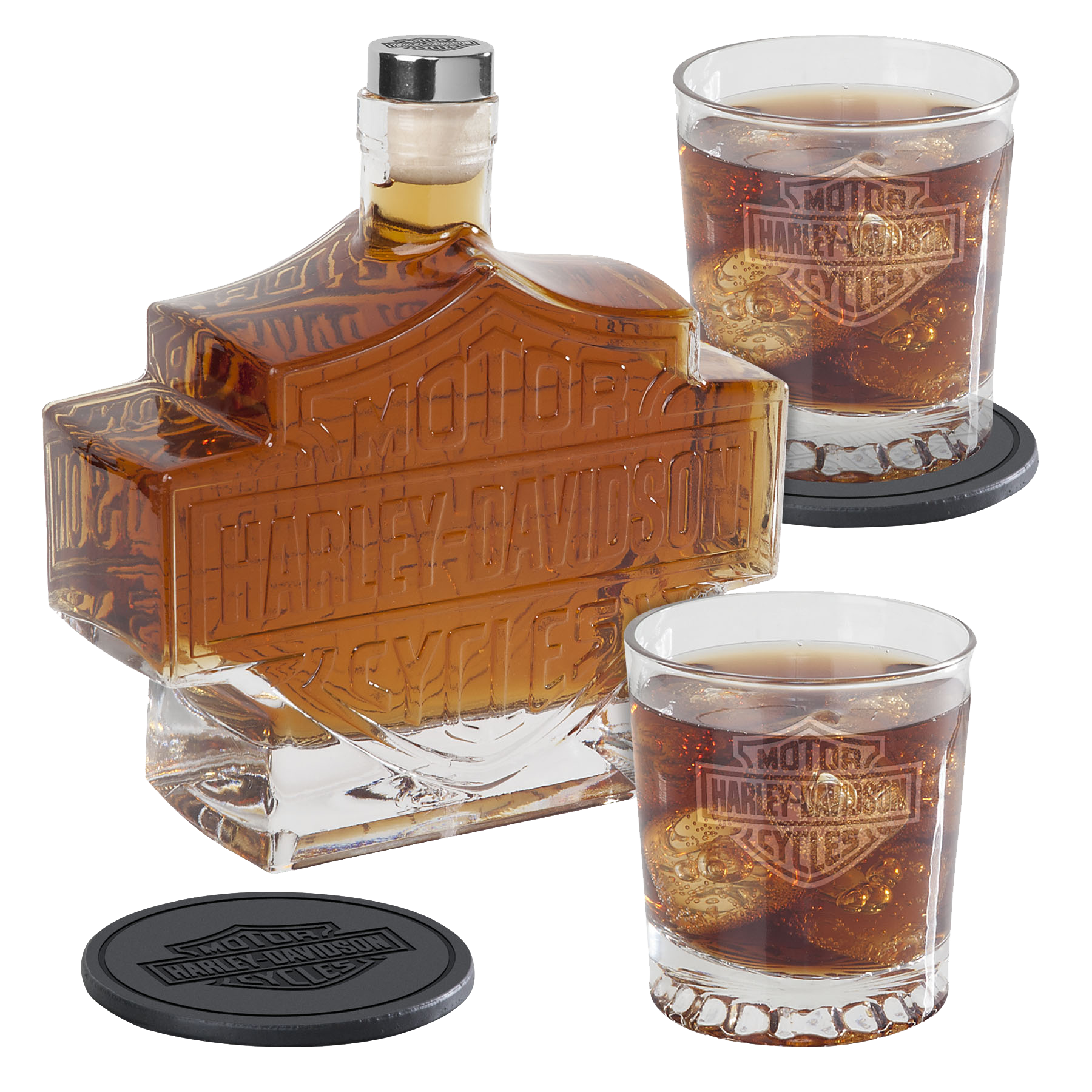 Lift your spirits and impress your guests with a H-D Bar & Shield Decanter Set. Perfect for casual or formal entertaining the sophisticated styling is sure to be the center of attention.