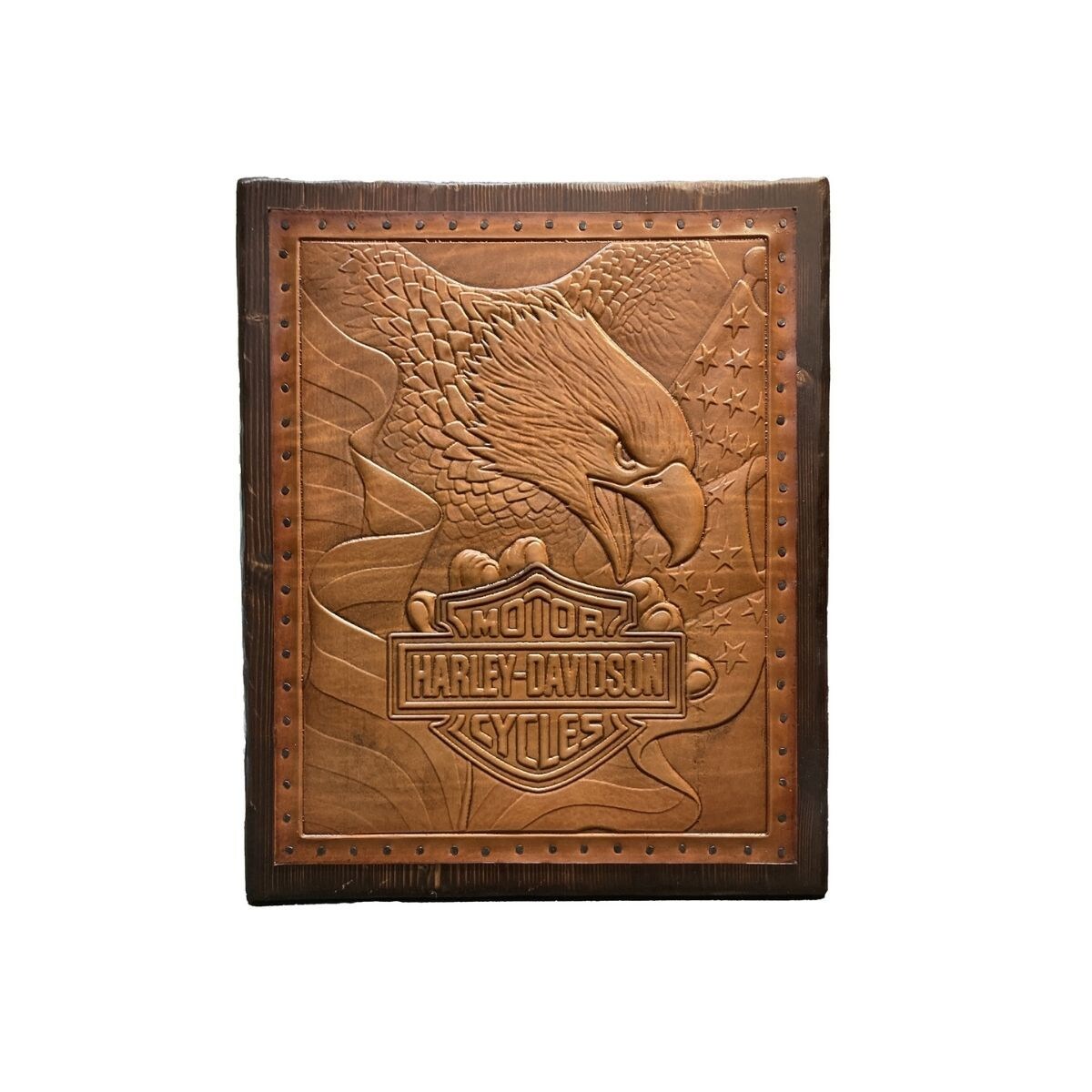 Harley Davidson Patriotic Eagle Leather Wall Art