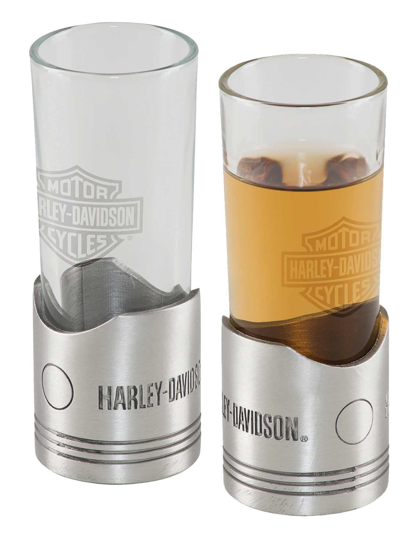 Make every shot a Harley-worthy one with the authentic Harley Davidson Piston Shot Glass Set! Featuring an eye-catching piston design and finely detailed logos from the iconic motorcycle brand, this set is sure to bring a cool, classic vibe to any home bar.