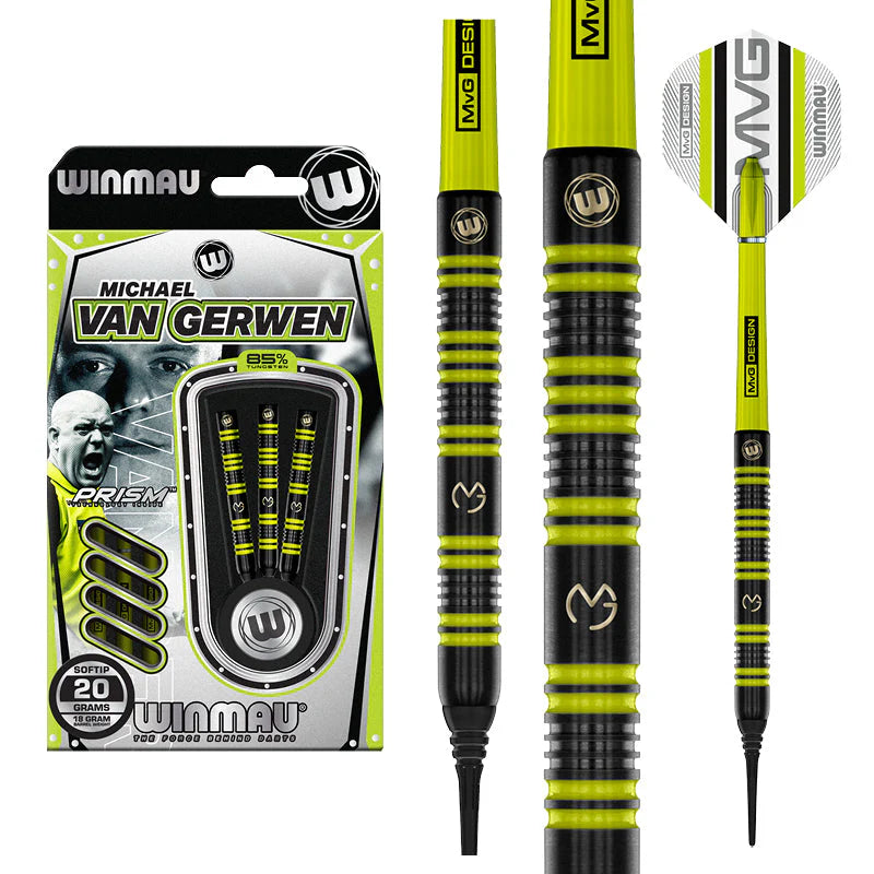 Winmau MVG 85% Dart Set 18 B/W 20 F/W
