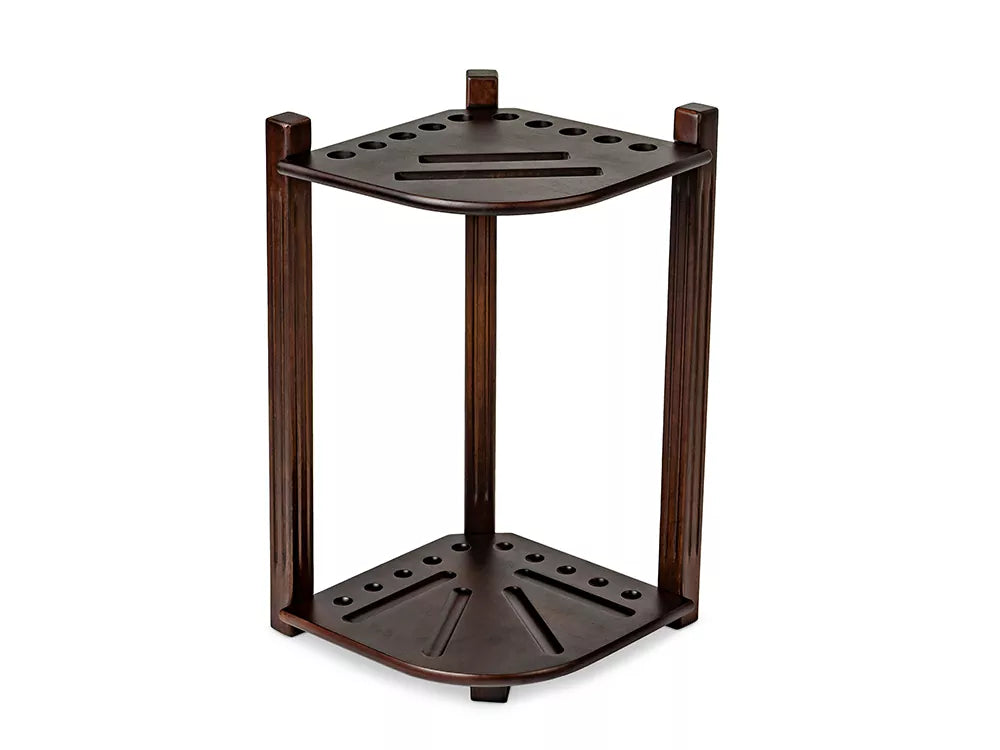 The Presidential Billiards Corner Floor Rack is the perfect option for those who want an impressive furniture piece to store their pool cues. Not only does can it be purchased in 4 exquisite finishes, but it also adds elegance to a room. The cue rack includes storage for 10 cues, 2 ball racks, as well as billiard balls. The product can be purchased in the following finishes: Mahogany, Chestnut, Espresso, Black.