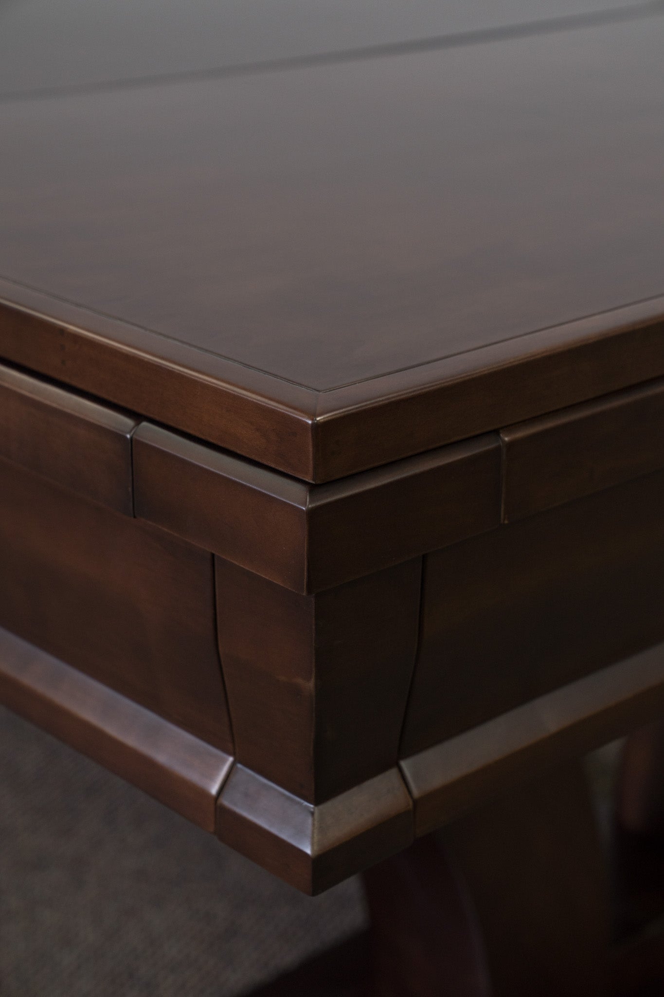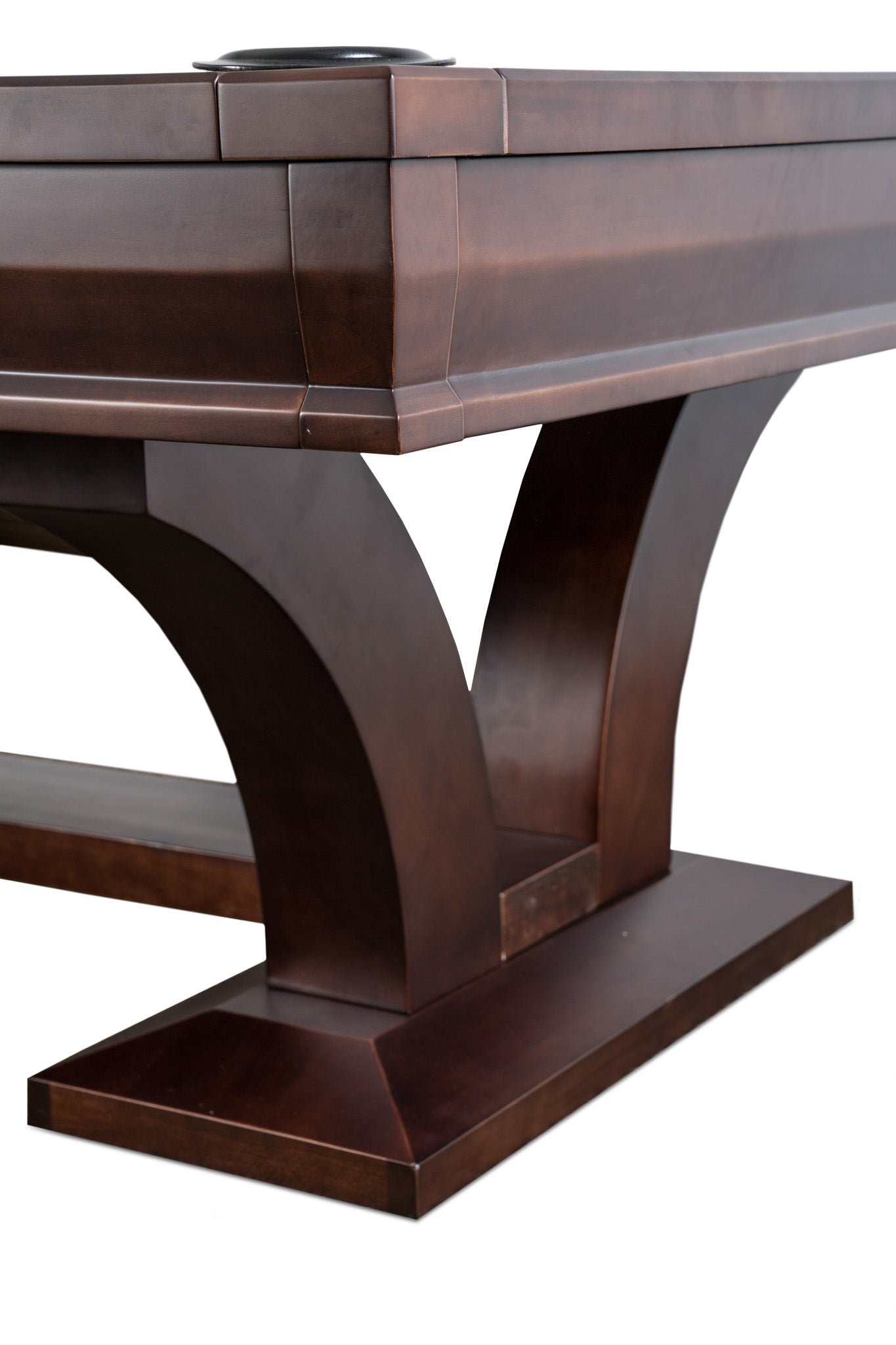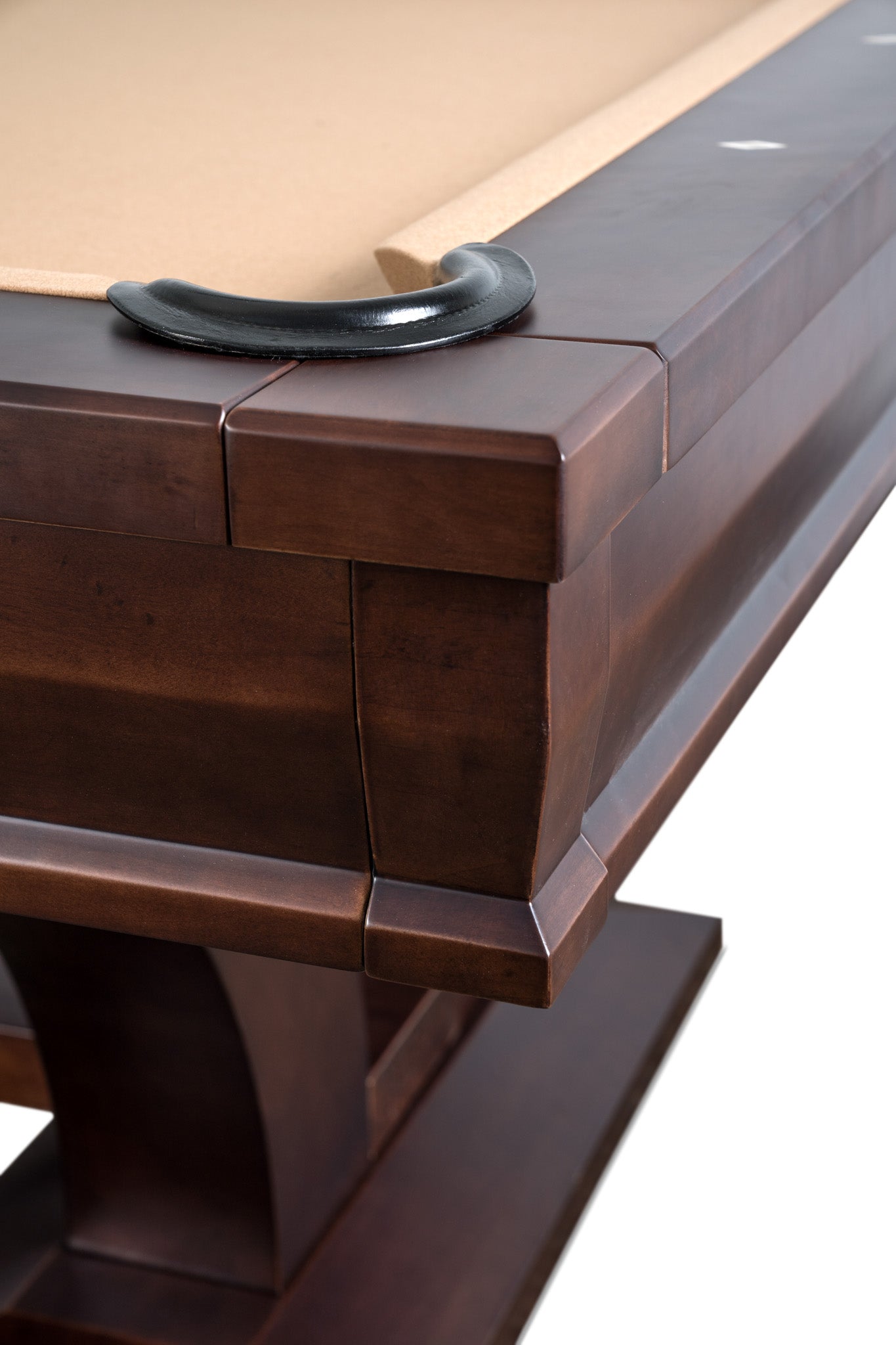 The Hamilton pool table is an elegant, solid wood table hand-finished in an espresso color. The sweeping arc of the legs gives this table an elegance that will look stunning in any home. Comes in 7', 8' to fit in your space! Includes standard cloth.