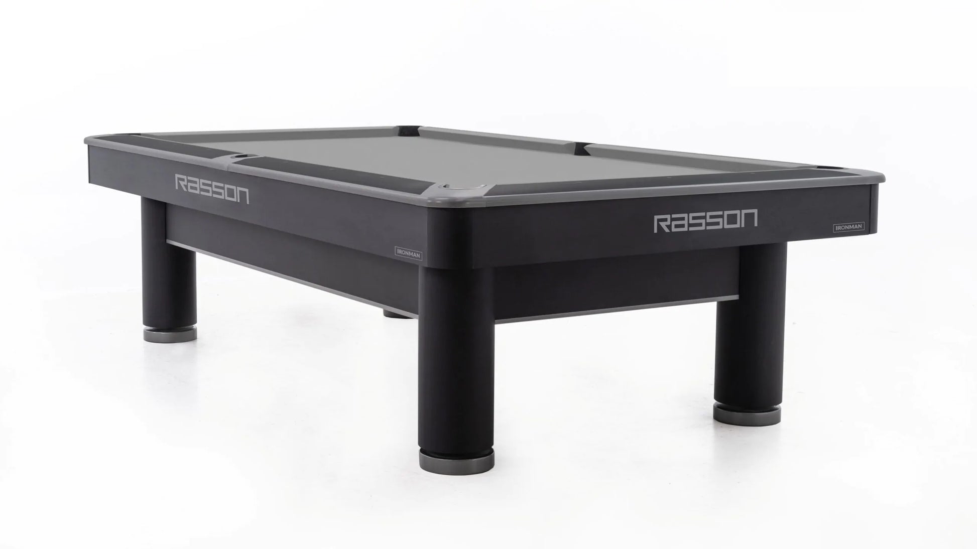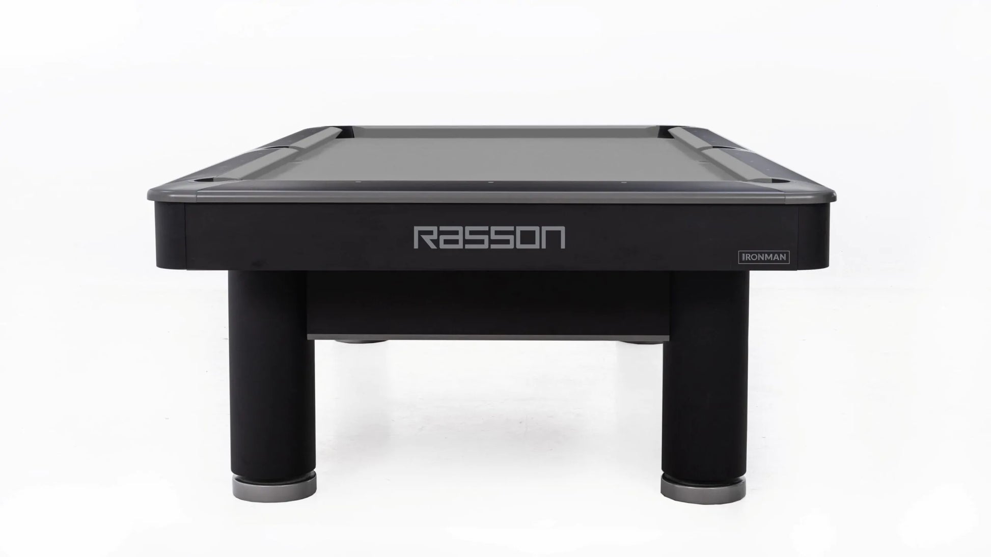 Engineered for strength, precision, and sleek modern appeal, the Rasson Iron Man lives up to its name with a bold industrial design and rock-solid performance. Featuring a 25mm thick premium slate, and Rasson’s patented leveling systems, this table delivers uncompromising consistency and accuracy. Its matte black carbon steel legs and low-profile cabinet create a streamlined silhouette, while aluminum alloy trim and anti-warp rails offer long-lasting durability and style. Built to WPA specifications, the Iron Man is ideal for competitive venues, upscale game rooms, or anyone who takes their game seriously.