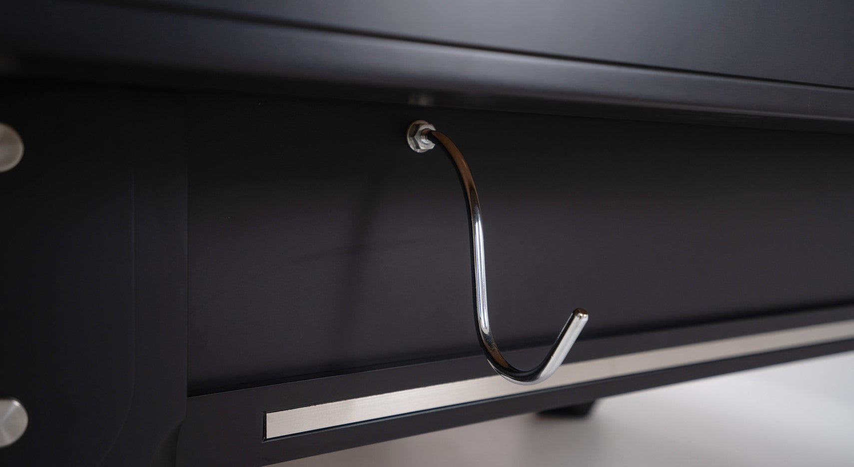 Solid wood coaming & slate level system. Eight fine-tuning bolts are evenly distributed on the 40mm thick Thai rubber wood long coaming and middle pull beam. The other four are distributed on each side leg and two are distributed in the middle of the short coaming. In order to achieve that each slate is evenly supported by 6 tuning bolts, which can not quickly adjust the level but also achieve the effect of stability and reduce the phenomenon of slate warping caused by personnel sitting on the corner of the ball table.