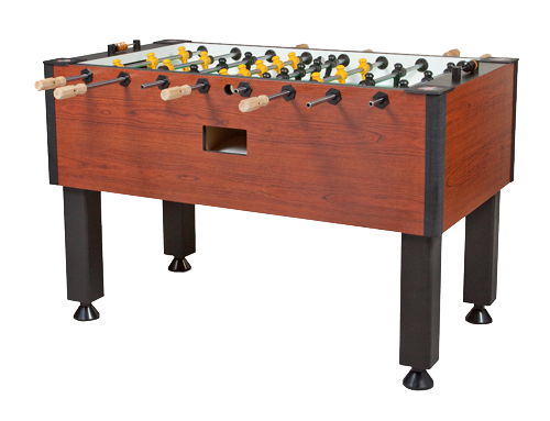 Professional grade performance in a more convenient package. This beautiful table includes the heavy-gauge rods, counterbalanced men, commercial-grade levelers and patented split bearings that make Tornado tables a favorite among Tournament players. A durable and attractive Victorian Cherry laminate finish on a 1 ½” thick cabinet ensures a great look now, and for years to come.