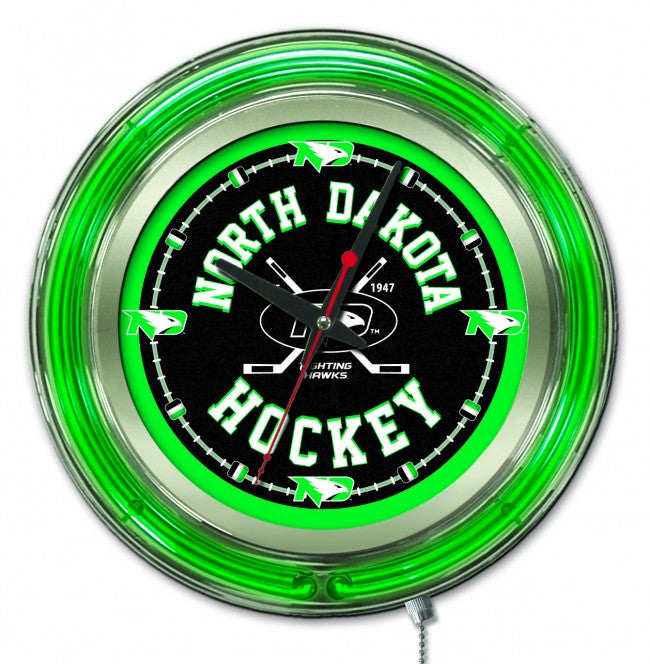 Welcome to the home of the Fighting Hawks! Show your UND pride with this bold 19" UND Hockey Neon Clock. With its iconic green neon finish, this stylish clock brings some Fighting Hawk spirit to any room in your home!