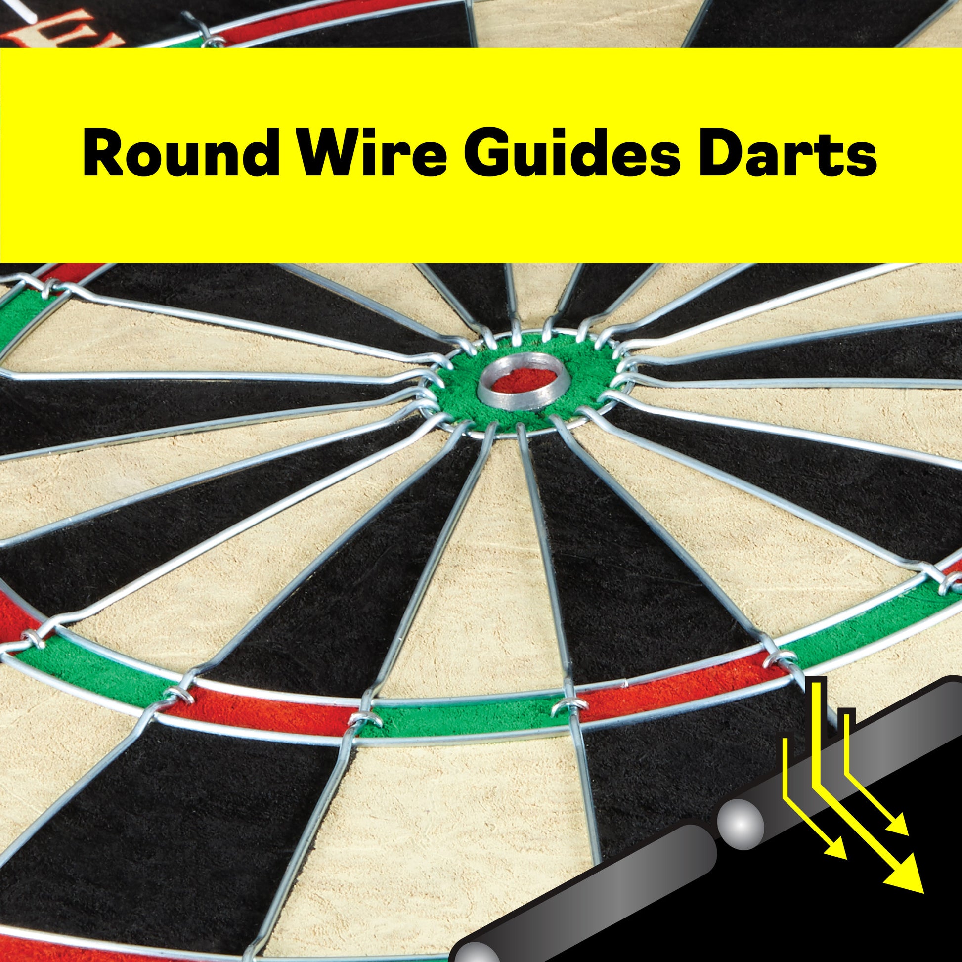 - Galvanized rounded wire spider allows darts to glide into board