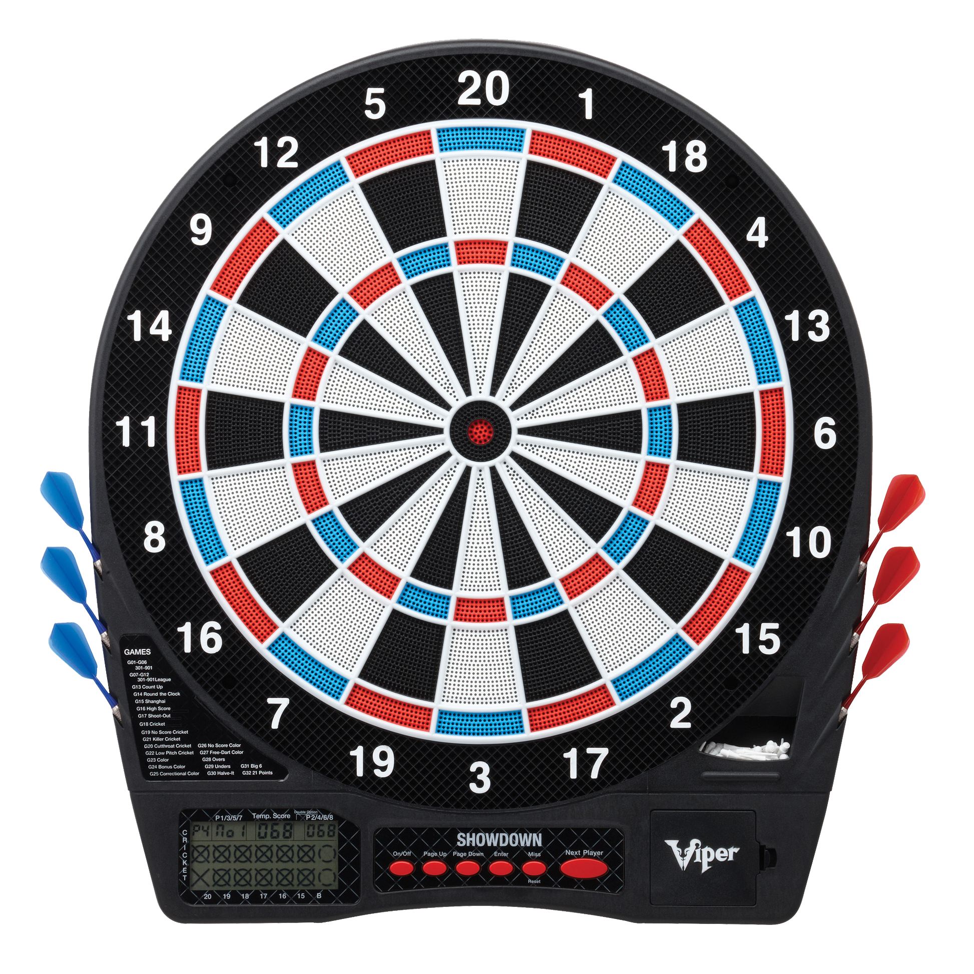 Introducing Viper ShowDown Electronic Dartboard - the professional grade dartboard for serious dart players! Experience robust features, enhanced user experience and countless hours or unbeatable darting action. Get the true arcade feel from your own home with this ultra-realistic electronically operated dartboard!